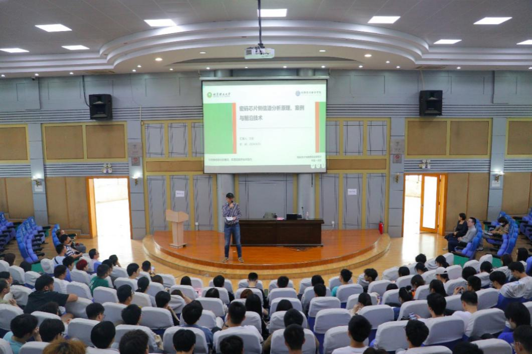 报告会由院长吕辉教授主持,他在致辞中对王安的到来表示热烈欢迎,强调了开展本次讲座的重要意义,并对参与师生提出了殷切希望。他指出,在科技强国时代背景下,芯片安全作为国家战略的重要组成部分,已经成为新质生产力发展的关键要素。只有保障芯片安全,才能确保新技术、新产品的稳定运行,进而推动新质生产力的不断提升,为构建科技强国、实现民族复兴贡献我们的智慧和力量。侧信道分析作为芯片安全领域的前沿技术,其研究和应用对于保障我国芯片产业的自主创新和安全发展具有不可估量的价值。本次讲座不仅是一次学术交流活动,更是一次创新的思想碰撞。希望大家能够珍惜这次难得的学习机会,认真听讲、积极思考,与专家展开深入交流和讨论。