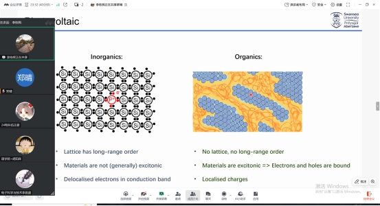 (理学院国际合作交流中心报道)2025年5月26日下午,应学院邀请,英国斯旺西大学集成半导体材料中心的李栋辉博士与我院进行了电子科学与技术相关领域的线上学术交流,为学院师生做了主题为“有机半导体分子多尺度聚集体构筑及光电性能调控”的学术报告。