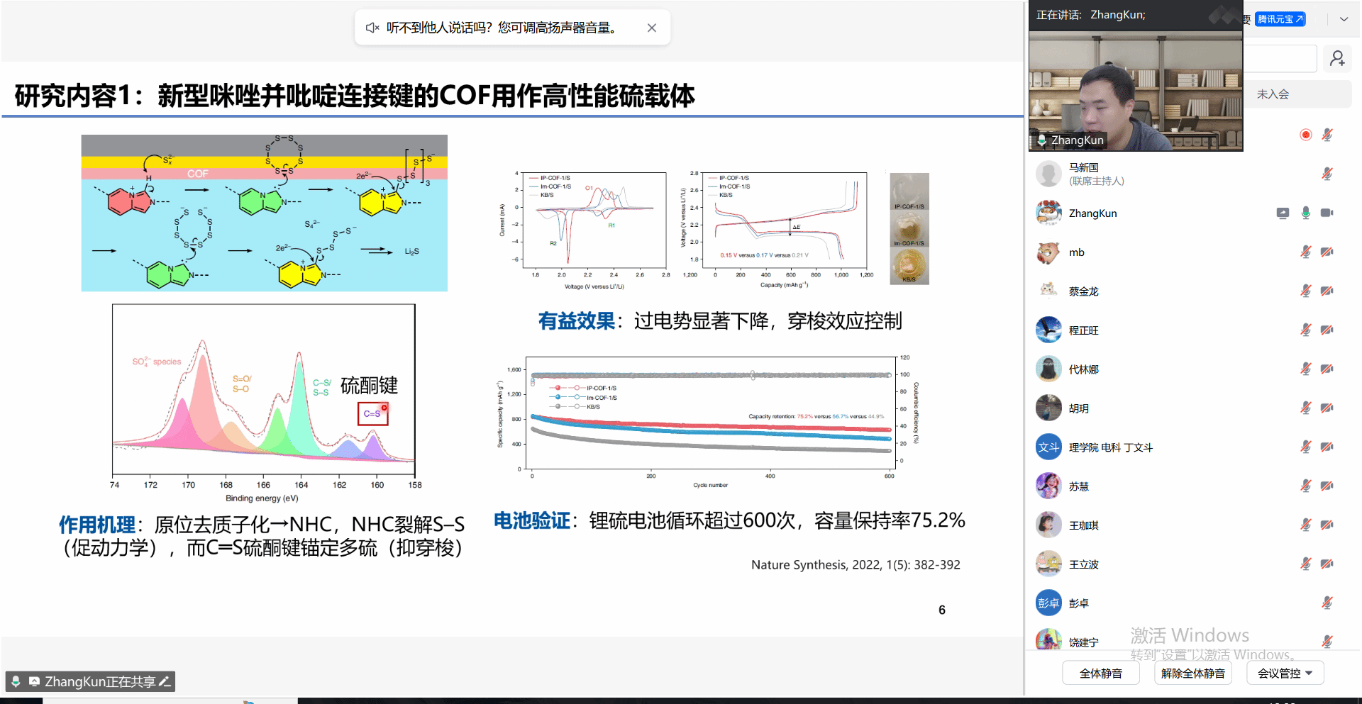 2025年9月26日上午,应学院邀请,新加坡国立大学的张坤博士进行了材料化学相关领域的线上学术报告,主题为:“有机多孔聚合物功能化及其碱金属电池应用”。