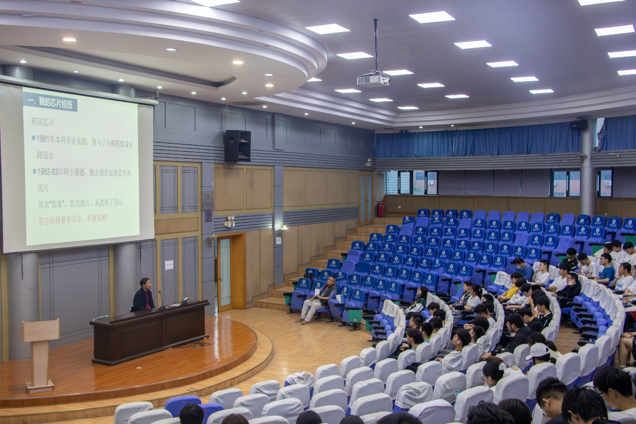 王国裕以自身艰难曲折的入学及从业经历强调了大学四年的学习对未来工作的重要性,他鼓励学生要充分利用大学的学习条件和资源,多动手、多做实验,为未来职业生涯打下坚定基础。接着,他向学生们普及了芯片领域的相关知识,并强调,作为科研工作者,要淡泊名利,耐得住寂寞。他特别指出,创新思维是科研工作者必备的品质。创新依赖于技术,不局限于逻辑。