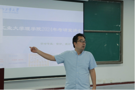 刘少文向同学们详细介绍了学院24年考研情况,通过直观的数据和深入的分析,鼓励同学们报考本校,也让同学们更清晰地了解所在专业考研现状,明确定位,理性务实择校择专业。