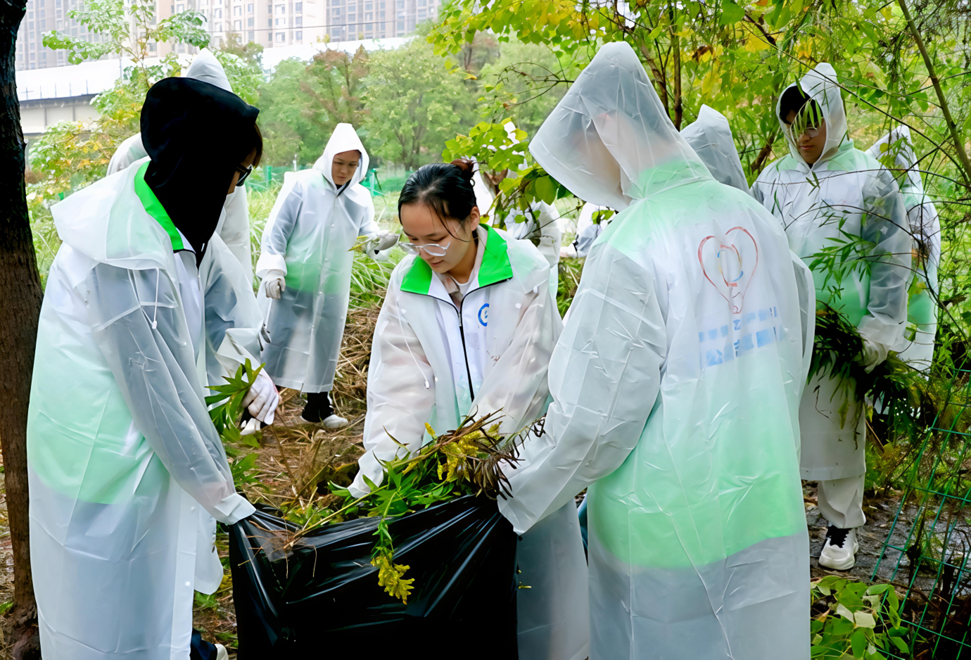 考虑到雨天作业的特殊性,学院提前备齐雨衣、手套与志愿服等工具,逐一分发时反复叮嘱防滑、防扎伤等安全注意事项。