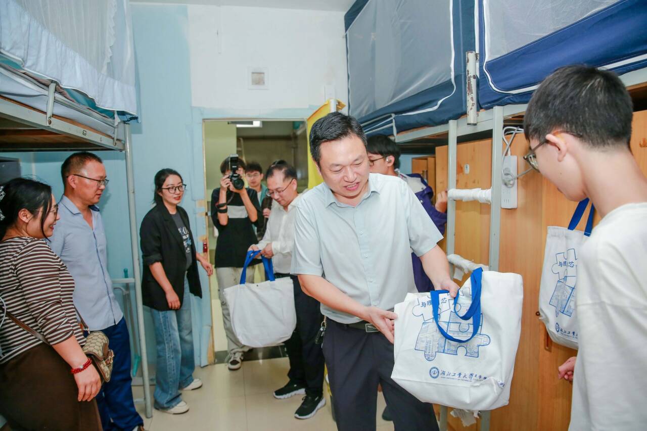 副校长贺行洋、校党委副书记、副校长桂丽来到理院迎新点详细了解新生报到情况,与同学们亲切交流,给现场迎新志愿者点赞加油,询问新生对新环境的适应情况,并送上暖心的问候与祝福,鼓励大家尽快融入集体,开启充实的大学生活;院党委书记石勇带领全院领导班子成员、班导师深入新生寝室慰问困难学生,亲手送上迎新大礼包,让同学们深切感受到理学院大家庭的温暖与关怀。