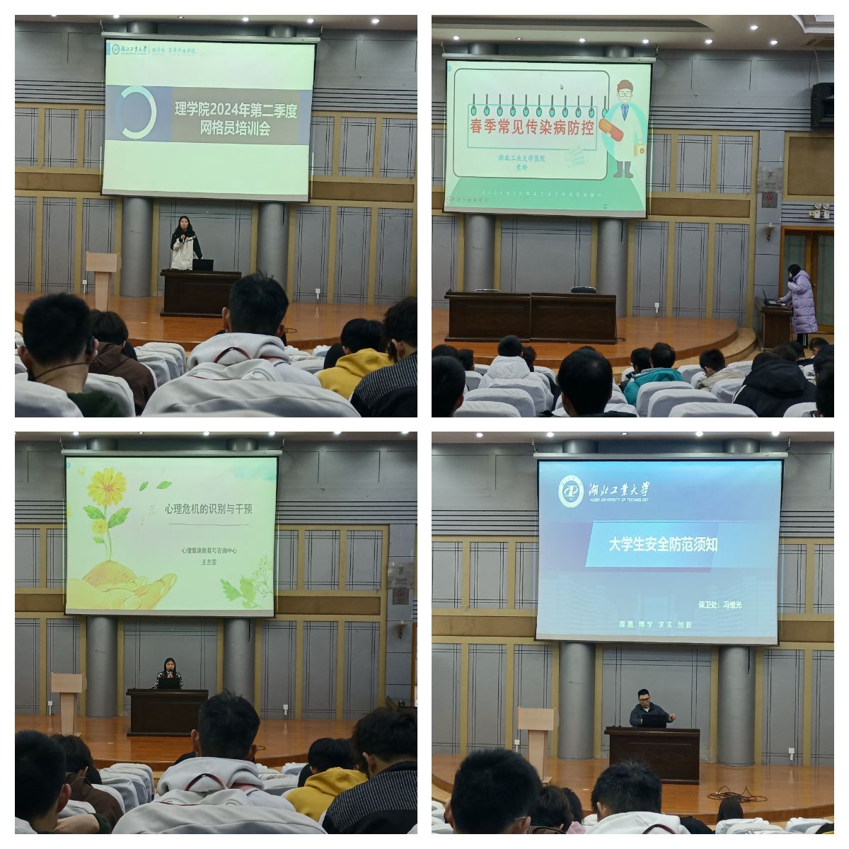 为全面贯彻落实学校春季学期开学相关学生工作要求,新学期开学以来,理学院深入开展大思政教育,持续推进“一站式”学生社区相关安全文化建设,加强网格员培训、传染病预防、心理危机干预、大学生安全防范等系列安全主题教育,提高学生安全意识,营造良好学习生活环境。