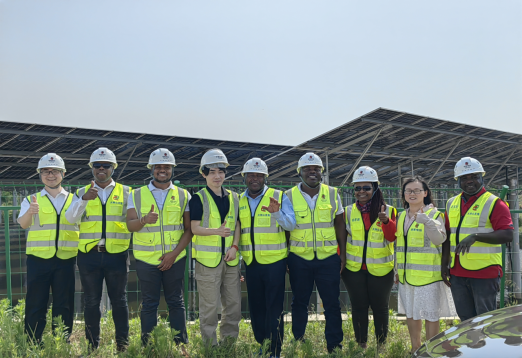 15日,理学院/芯片产业学院副院长马新国陪同南非代表团参观了中电国际-隆基绿能麻城市多能互补新能源基地