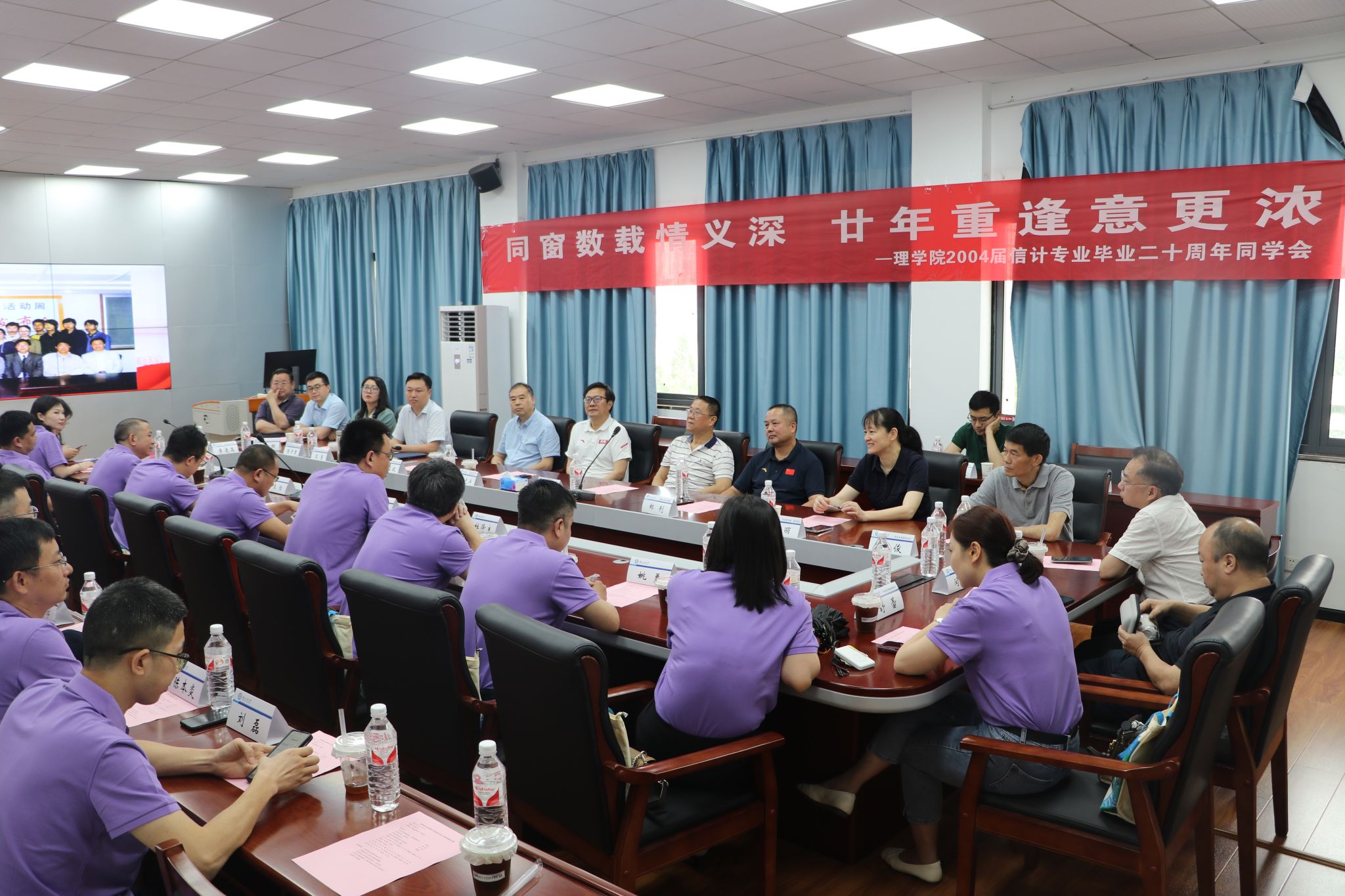 2024年6月8日,理学院信息与计算科学专业2004届本科校友返校聚会,并在学院会议室举行座谈会。校友会常务副理事长蔡光兴,校党委常委、组织部长桂丽,社会资源处长王俊,校资产经营管理有限公司总经理胡显波,理学院领导班子,当年的教师代表、院(系)负责人等出席会议。