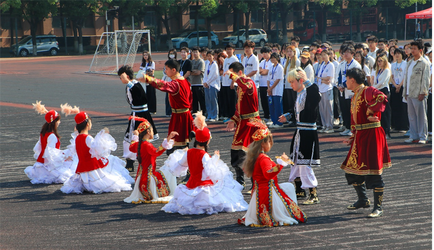 新疆舞、刺杀操表演方阵率先入场,以活力四射的表演拉开序幕。