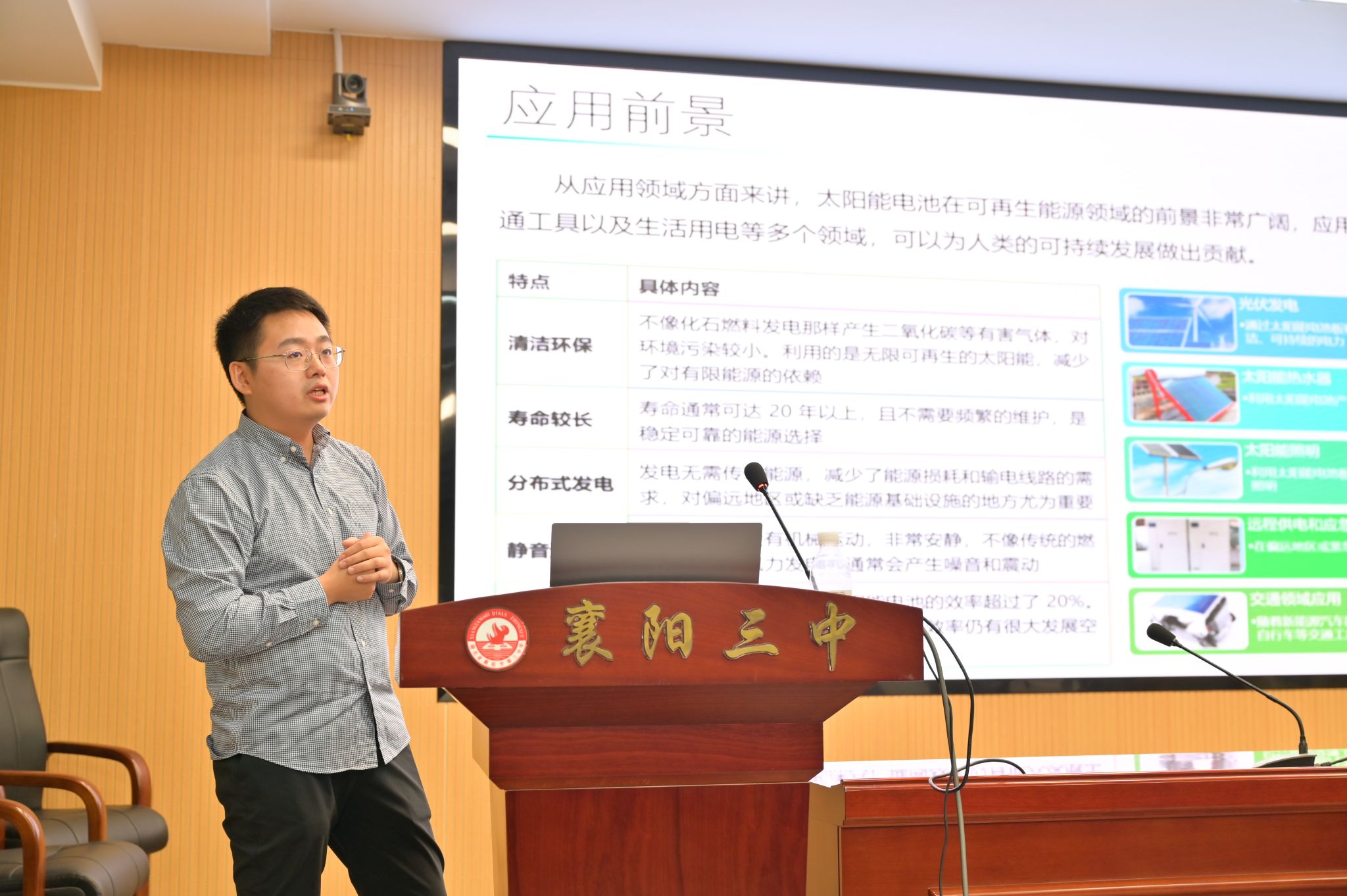 冯君润博士为高中生们讲授主题为《小材料,大能量:解码新能源器件背后的科学逻辑》的科技讲座。他结合自身在新能源材料与器件领域的国际前沿研究,用生动的语言揭示科技创新的魅力,点燃在场学生对科学探索的热情。