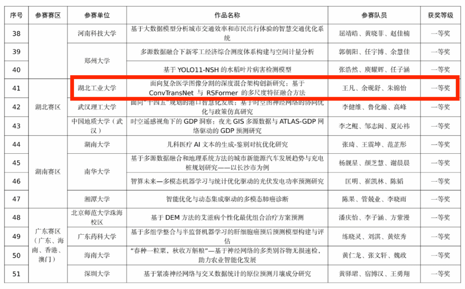 此次竞赛我校共派出58支队伍参加省赛,最终斩获国家一等奖1项,国家三等奖2项,省一等奖5项,省二等奖14项,省三等奖17项,共计获奖39项,获奖等级和获奖数量均创历史新高。湖北赛区本科组仅3只队伍荣获全国一等奖,我校位列其中。