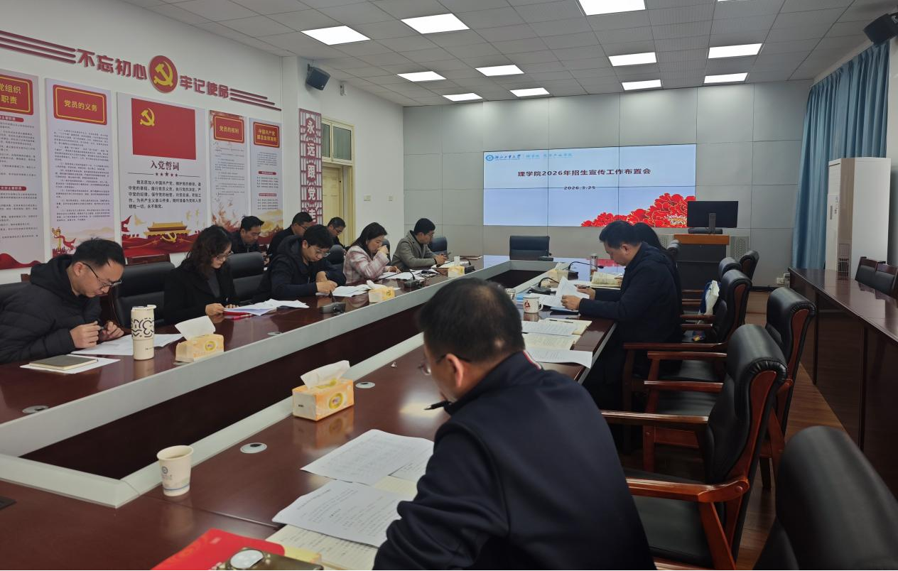 为全面落实学校招生就业工作总体要求,3月25日,理学院召开2026年招生就业工作布置会,学院全体领导班子成员、各系部支部书记和主任以及各科室负责人参加会议。会议由学院党委副书记陈彦君主持。
